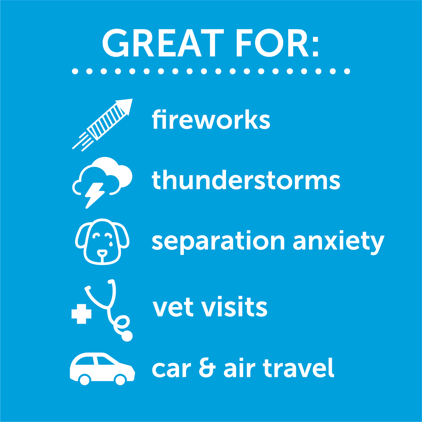 It may help to calm during fireworks, thunderstorms, travel, vet visits, separation anxiety and more! Like swaddling an infant, the ThunderShirt® patented design applies gentle, constant pressure to calm all types of anxiety, fear, and over-excitement issues.